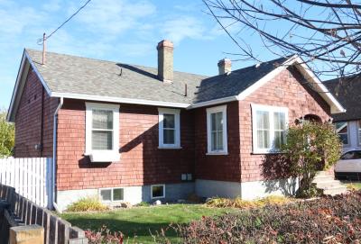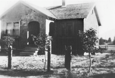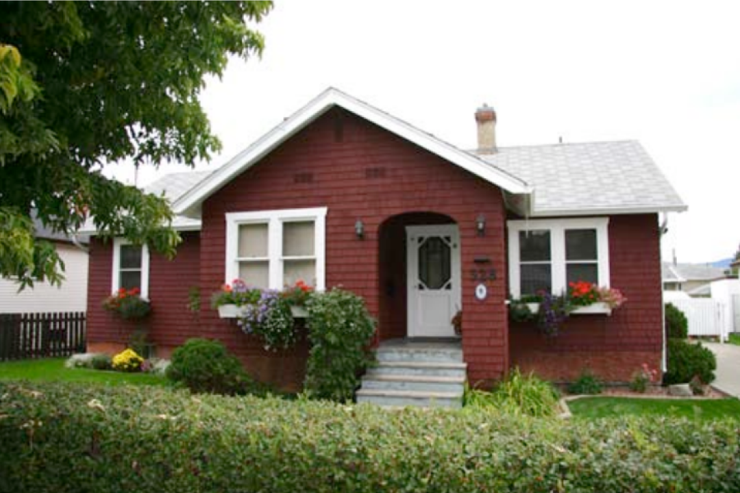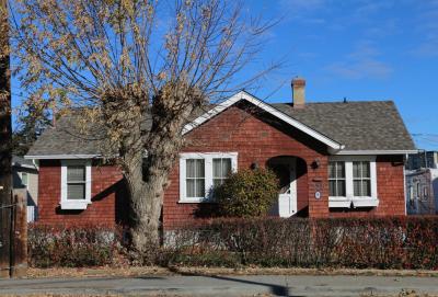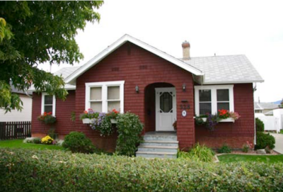 The Tom Bones House is a one-storey, wood-frame Arts and Crafts cottage with an inset entry