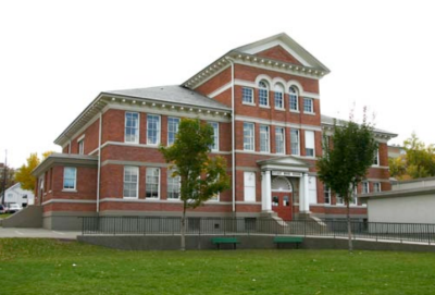 • high degree of retention of original interior features such as wooden wainscoting, wooden trim, maple floors, lath-and-plaster walls, panelled doors with original hardware, internal staircase with newel posts with drop finials, original room configuration including third-storey classroom, and original boiler and coal chute