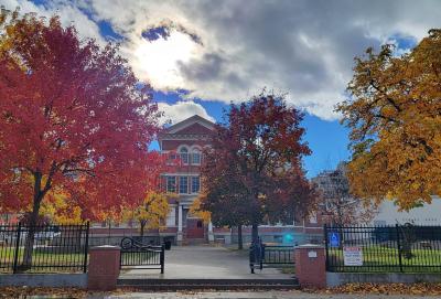 • location on a large downtown corner lot, set back far from St. Paul Street