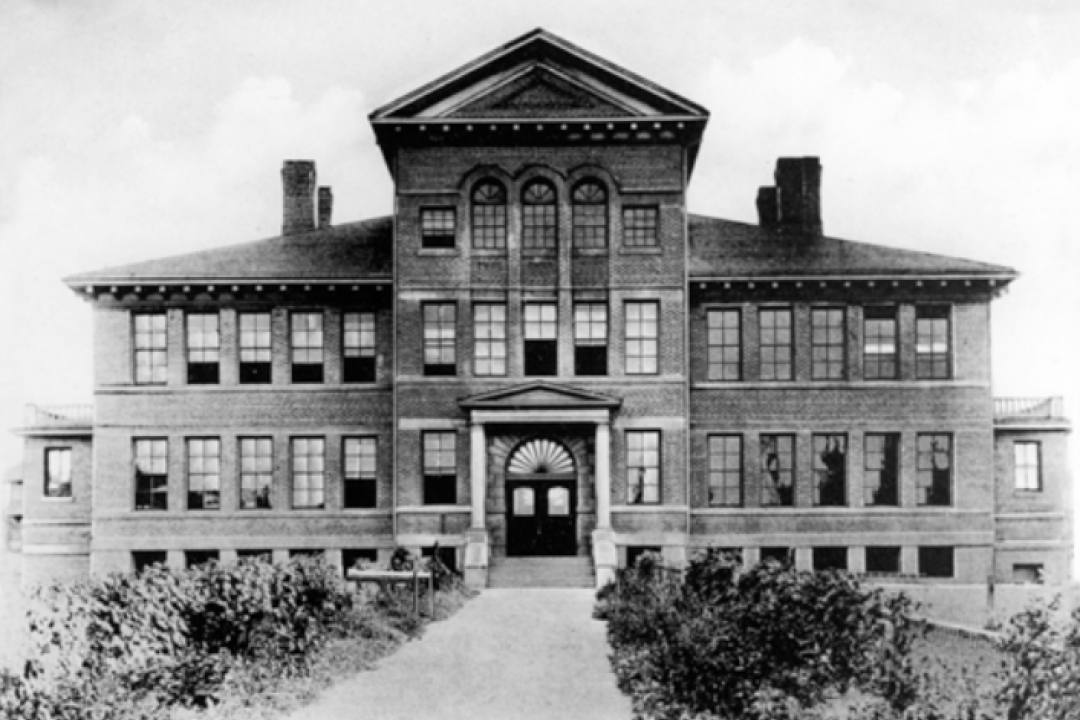 Stuart Wood School is significant as one of the earliest surviving schools in Kamloops, and its prominence demonstrates the growth and development of the community over time and the high value that was placed on public education. Opened in 1907 as the Kamloops Public School, it played a vital role in the life of local children. Built just fourteen years after Kamloops was incorporated, this was the town’s third public school to be constructed within a twenty-one year period. Kamloops’s first public school was built in 1886 on the site of the Old Court House; however, the town’s rapid population growth necessitated that another school be built in 1892, which was followed shortly by the construction of this school in 1906-07. Until 1913, the elementary grades met on the first two floors, while the high school grades met on the top floor.