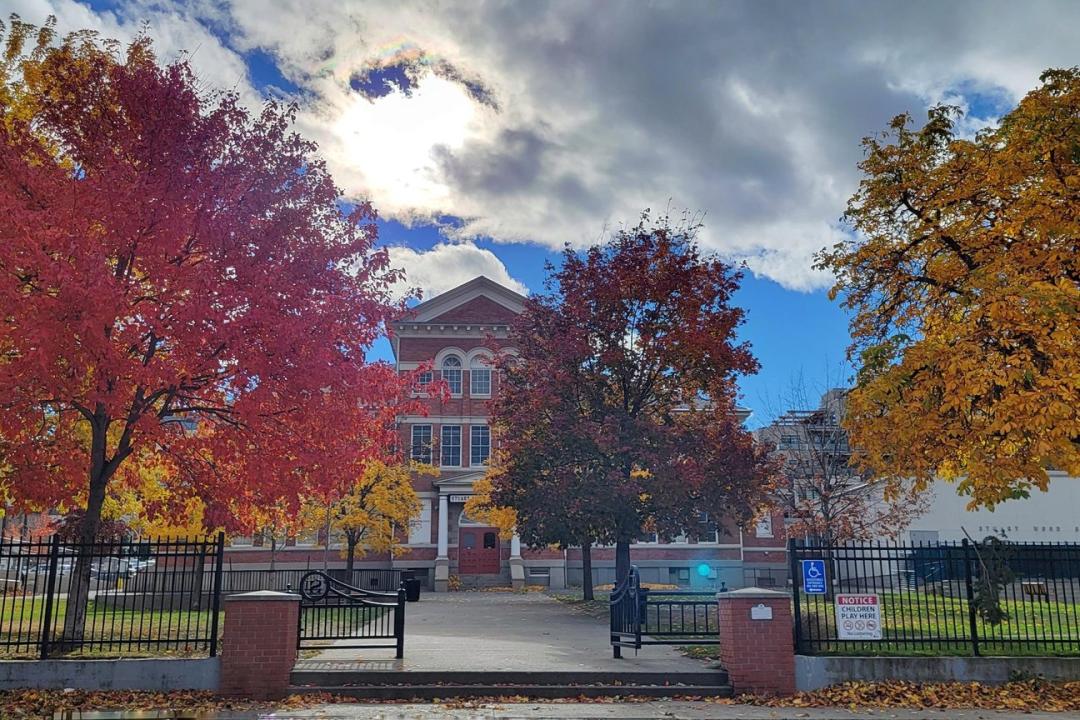 • associated landscape features such as surrounding grassed schoolyard and playing fields, and mature perimeter plantings such as Silver Maples and Horse Chestnut trees