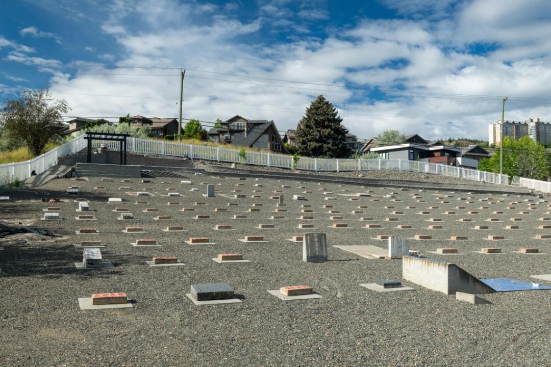 With panoramic views of the Thompson River and Mount Paul, the Kamloops Chinese Cemetery is situated on a sloped and open grassland site. It is located north of Lombard Avenue and east of Hudson's Bay Trail in an area known as the Powers Addition, on the southwestern outskirts of downtown Kamloops. The cemetery contains marked and unmarked graves of Chinese who lived and worked in Kamloops as well as monuments associated with traditional Chinese death ritual practices.