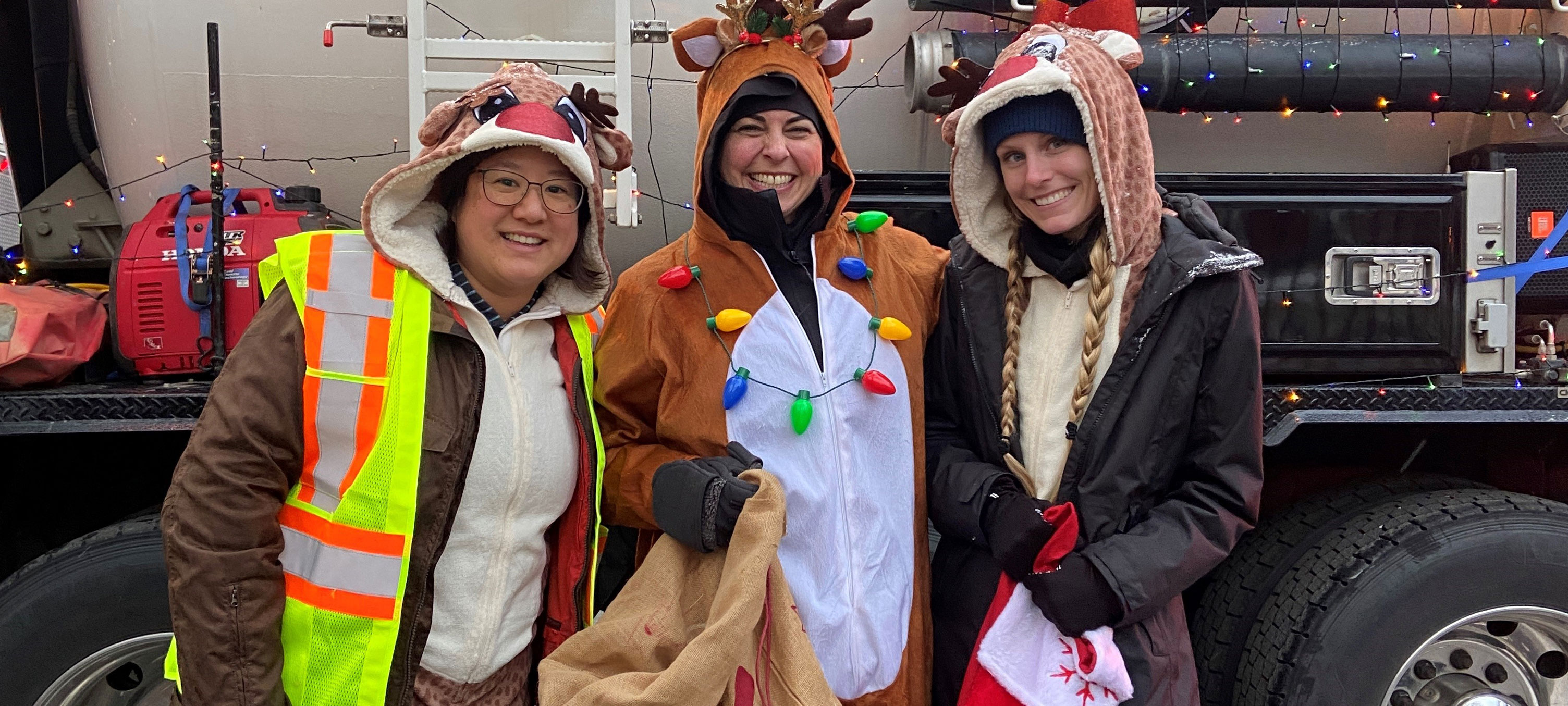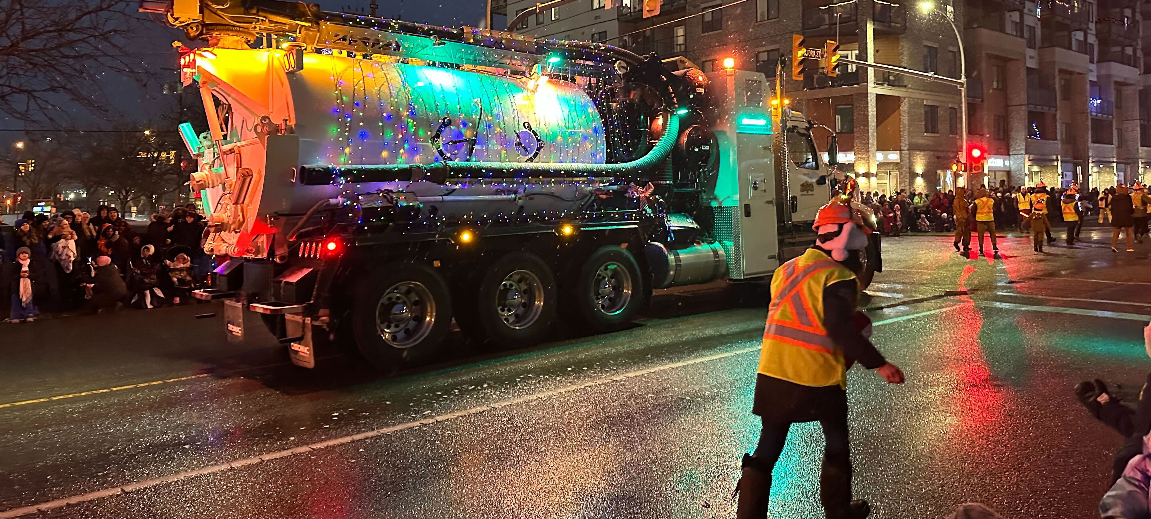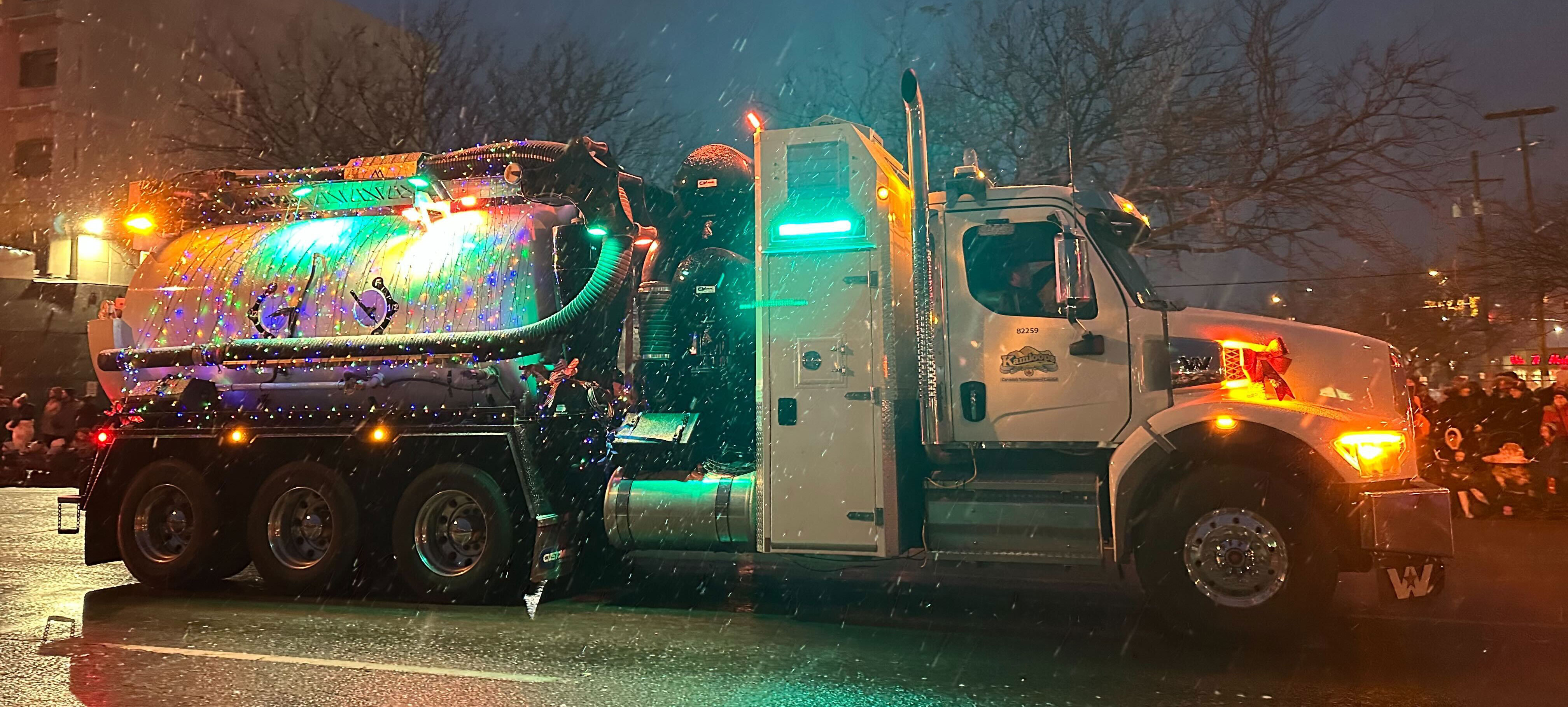 Three thousand glittering lights and two oversized elves were the focal points on a hydrovac truck (the largest vehicle in the City Civic Operations fleet) that played music as it rolled down the street.