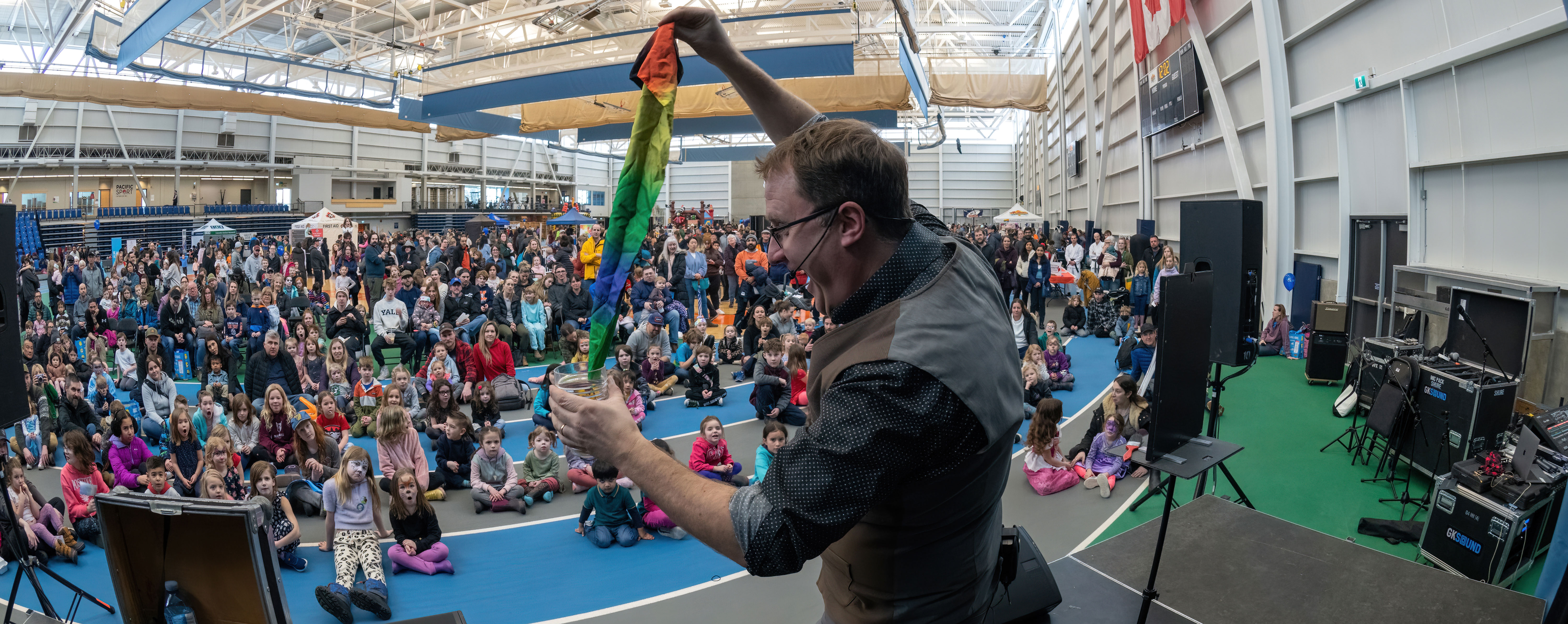 Event highlights included a lobby welcome by the Bells of Note choir, a performance by magician Clinton W. Gray, dressing up in costumes with Laughing Stock Theatre Society, face painting, bouncy castle fun, and crafting with Boogie the Bridge. PacificSport Interior BC, the Kamloops Community Football Society, and many others engaged children with sport activities, allowing kids to explore their sport curiosities.