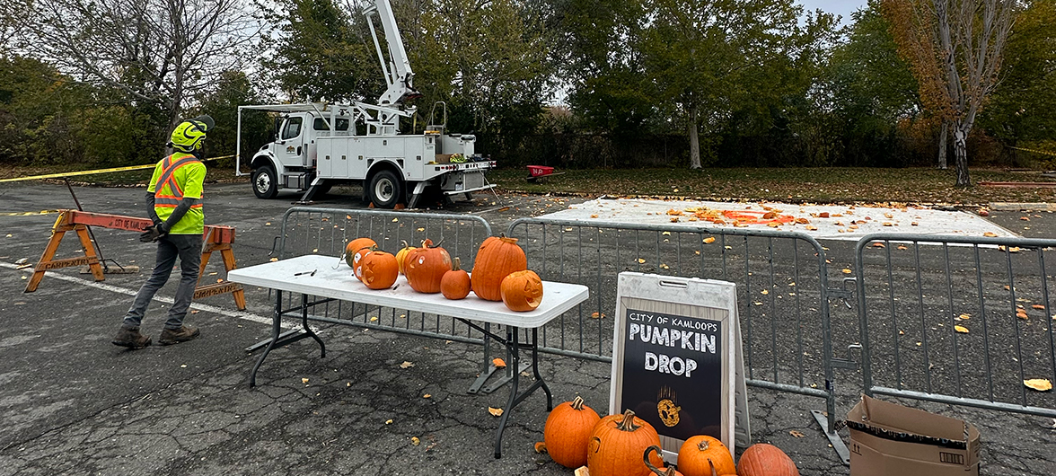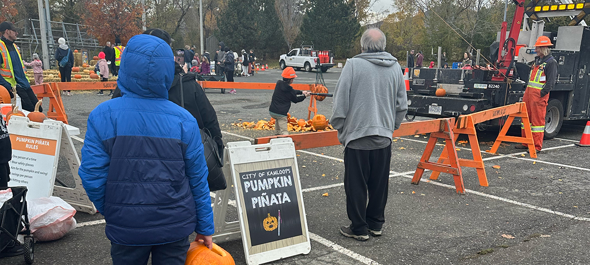 A big thank you to Blackwell Dairy for lending milk crates, Purity Feed for supplying straw bales, the BC Wildlife Park for donating prizes, and Privato Winery for donating extra pumpkins to smash!