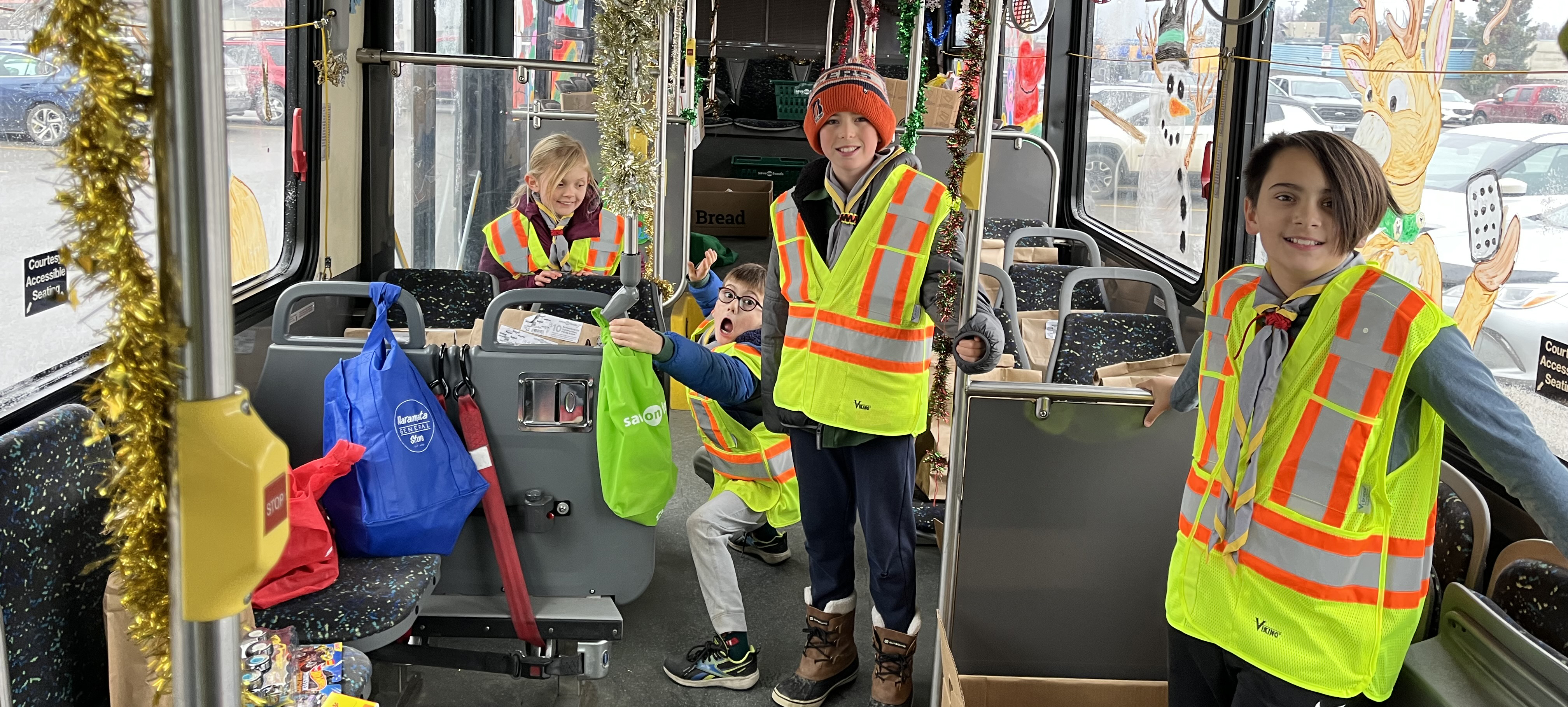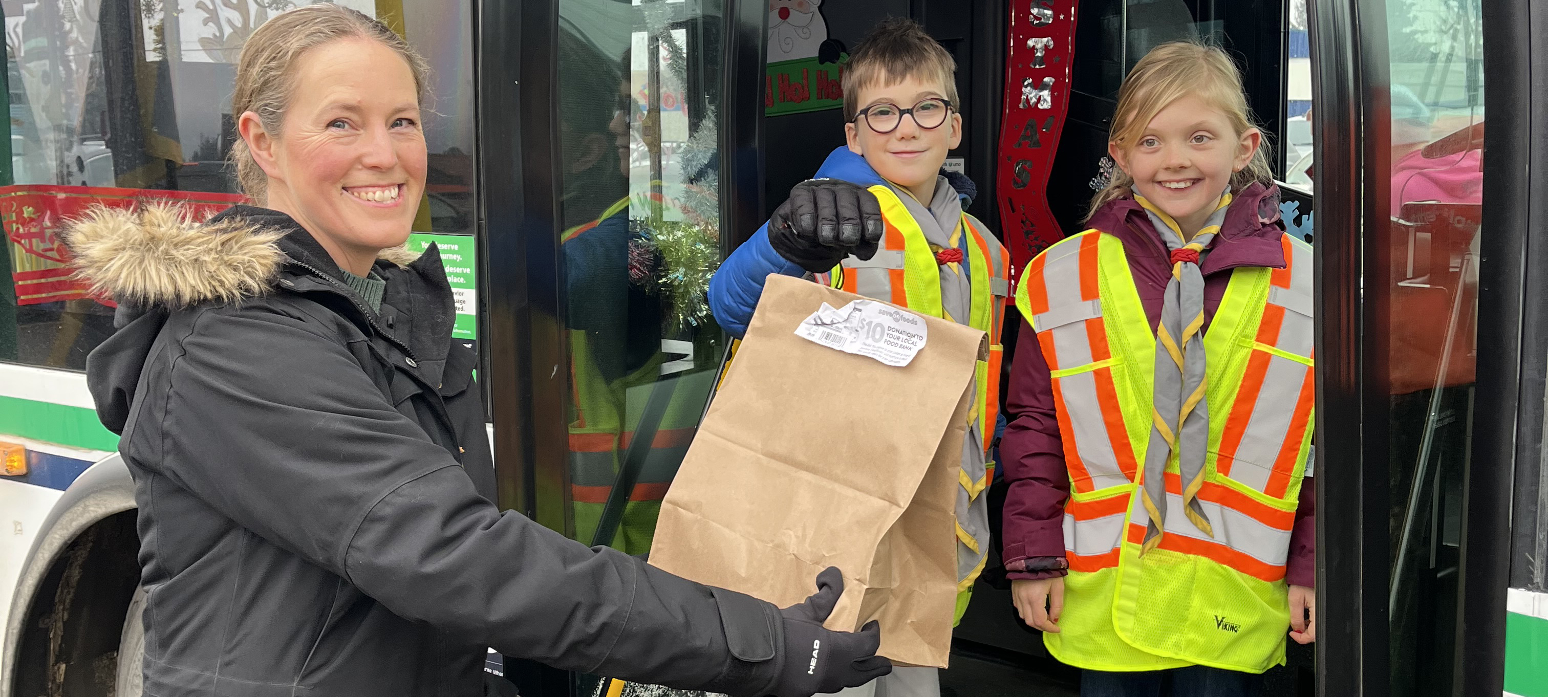 In partnership with BC Transit, the City of Kamloops hosted the annual Stuff the Bus event on December 7 and 8, 2024, at the Columbia Square Save-On-Foods to support the Kamloops Food Bank.