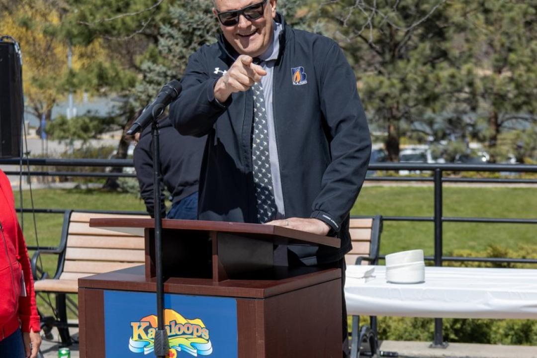Mayor Ken Christian announcing door prizes at the City's 10th Annual Volunteer Appreciation BBQ