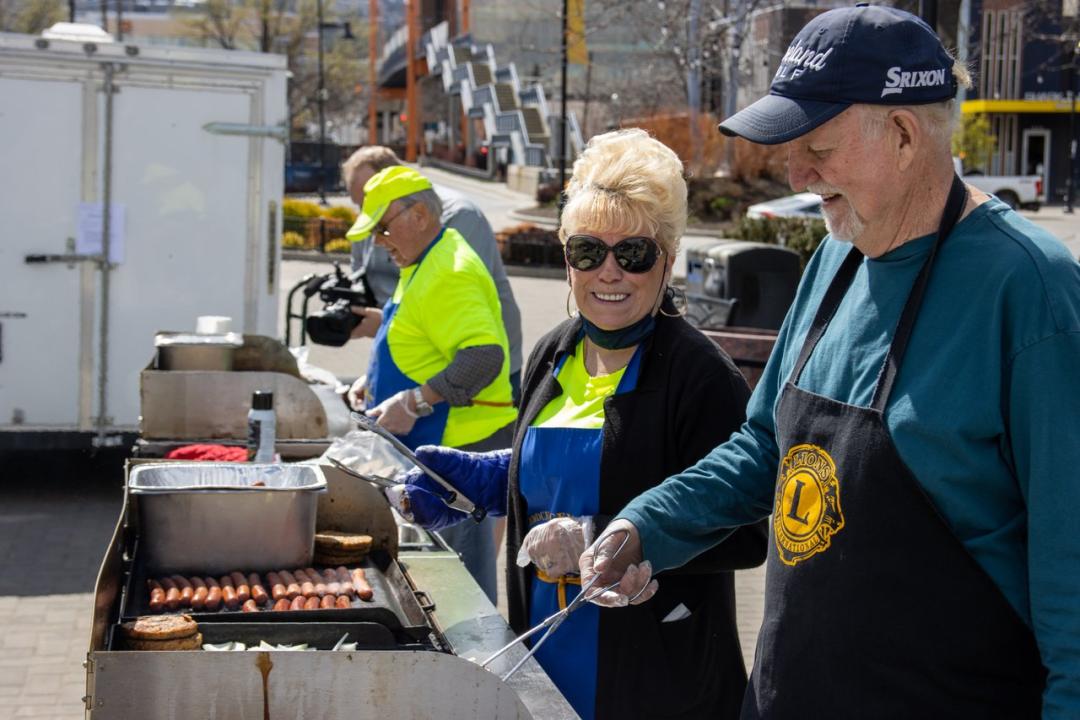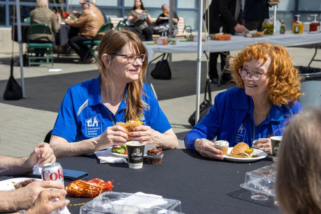Valleyview Overlanders Lions Club members sever burgers at the City's 10th Annual Volunteer Appreciation BBQ